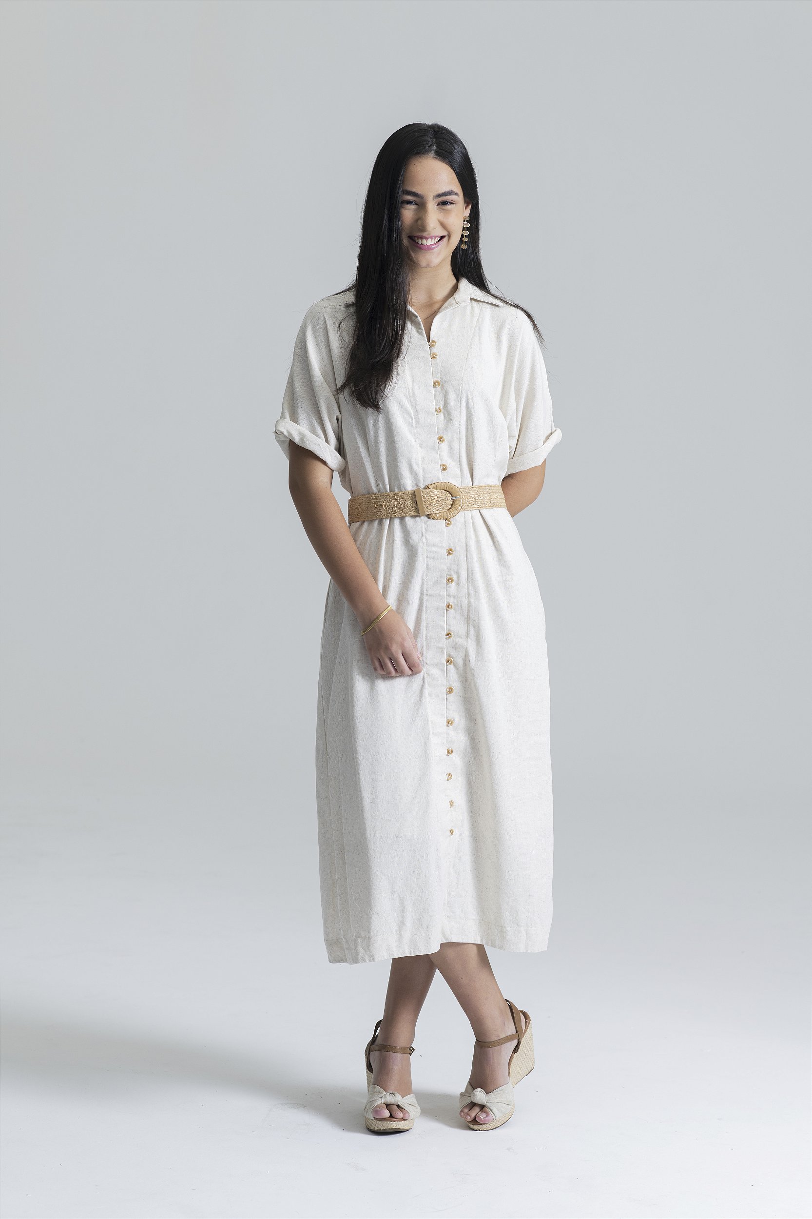 Feito em linho ecológico, que trás todo o conforto e frescor, mas sem abrir mão da elegância. Possui ainda botões lindos e bolsos, para você levar seus pertences. Simplesmente fantástico.